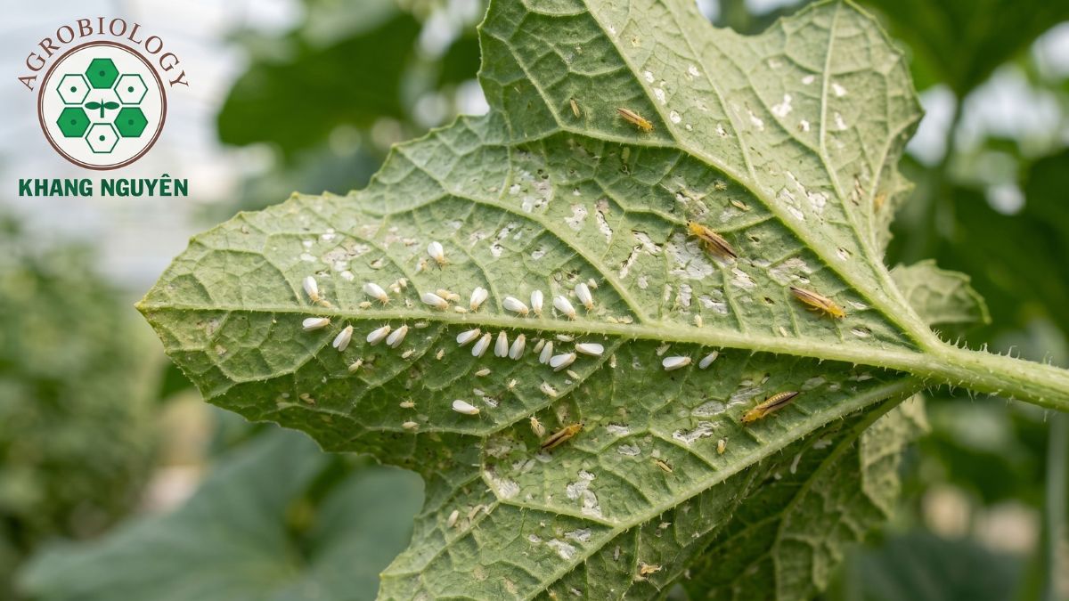 - Qua côn trùng chích hút: Đây là thủ phạm số 1. Bọ phấn trắng (Bemisia tabaci), bọ trĩ (Thrips) và rầy mềm mang mầm bệnh từ bên ngoài nhà màng bay vào. Khi chúng cắm vòi hút nhựa từ cây mang bệnh, virus sẽ nằm trong tuyến nước bọt của côn trùng và truyền sang cây khỏe ngay trong lần chích hút tiếp theo.