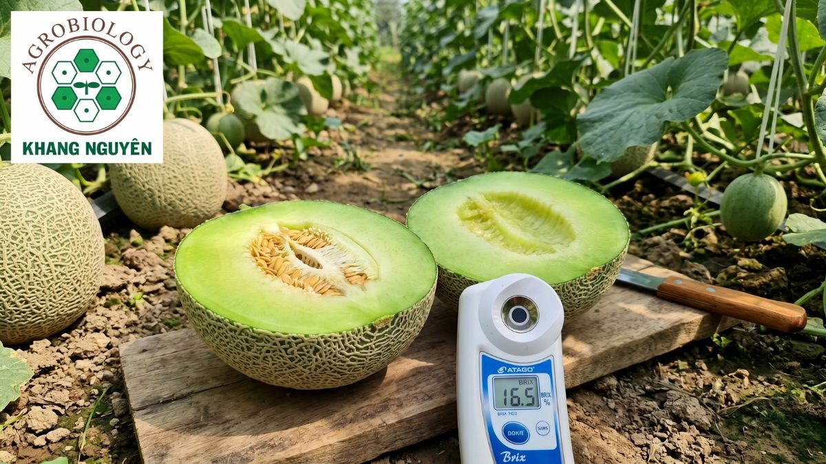 - Hạt giống lai F1 siêu kháng bệnh: Khang Nguyên cung cấp độc quyền dòng hạt giống dưa lưới F1 tự lai tạo. Giống dưa này mang hệ gen kháng virus cực mạnh, sinh trưởng khỏe, không chỉ hạn chế tối đa bệnh khảm mà còn đảm bảo tỷ lệ đậu trái cao, ruột giòn ngọt với độ Brix lên đến 15 – 17.