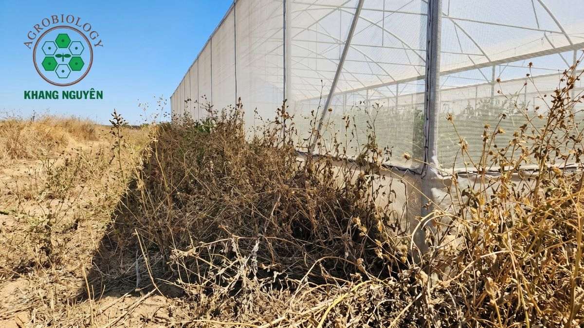• Nguyên nhân bùng phát: Trời nắng nóng sầm uất, độ ẩm không khí thấp (khô hanh). Tàn dư cỏ dại xung quanh nhà màng không được dọn sạch.
