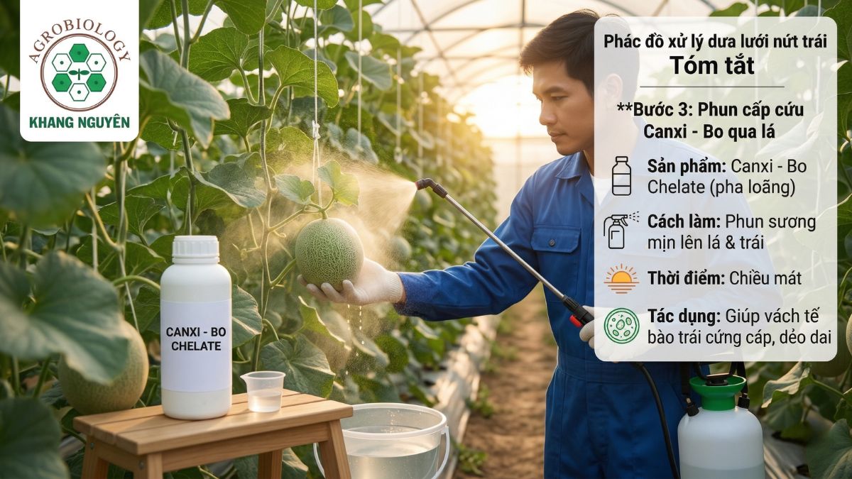 - Thời điểm phun: Phun vào chiều mát để cây hấp thu trọn vẹn, giúp vách tế bào của các trái chưa bị nứt nhanh chóng cứng cáp và dẻo dai trở lại.