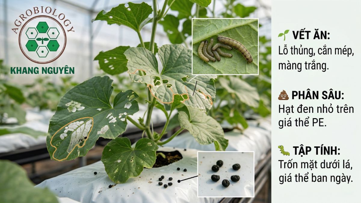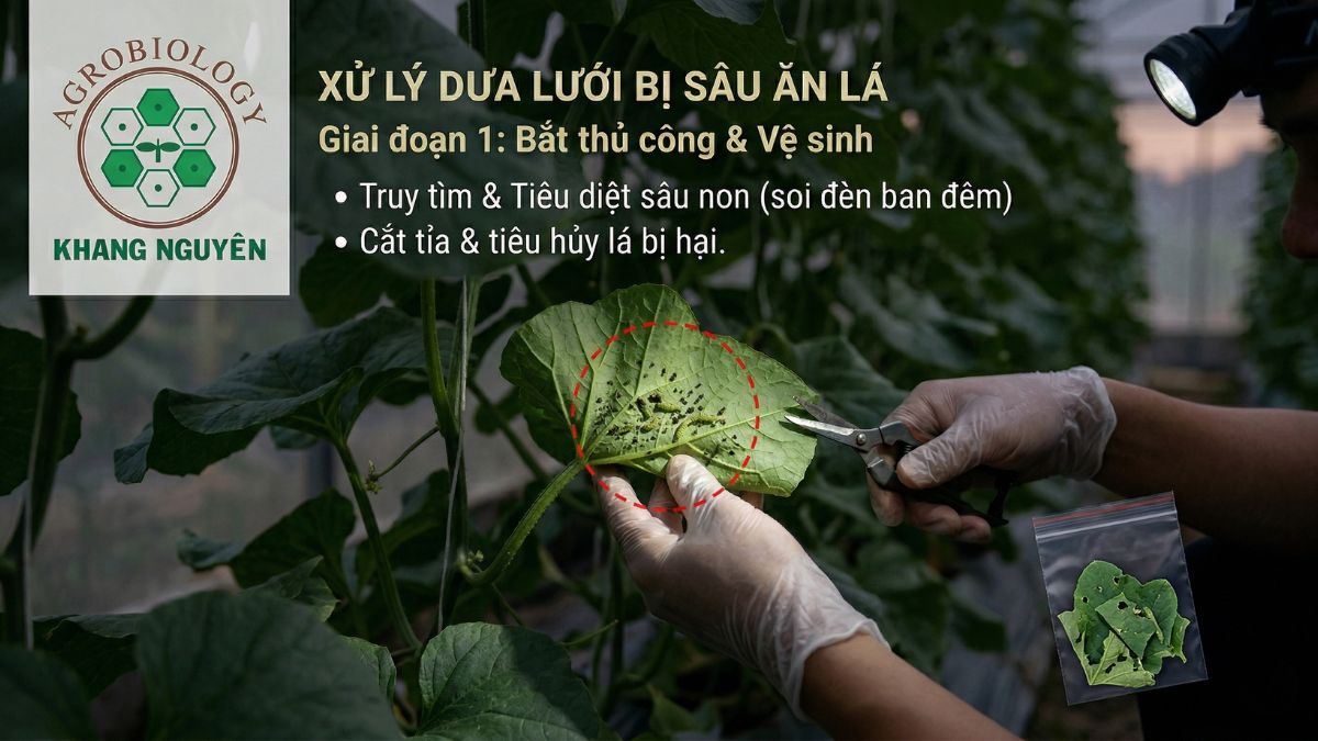 Bên cạnh nấm bệnh, dưa lưới bị sâu ăn lá là nỗi ám ảnh dai dẳng của nhiều chủ trang trại. Chỉ sau một đêm, những màng lá xanh mướt có thể bị cắn nham nhở, thủng lỗ chỗ, làm mất đi “nhà máy quang hợp” tạo đường nuôi trái. Để dập tắt dịch sâu hại mà vẫn đảm bảo tiêu chuẩn nông sản sạch xuất khẩu, chuyên gia Khang Nguyên sẽ hướng dẫn Bà con phác đồ diệt trừ chuẩn sinh học ngay dưới đây.