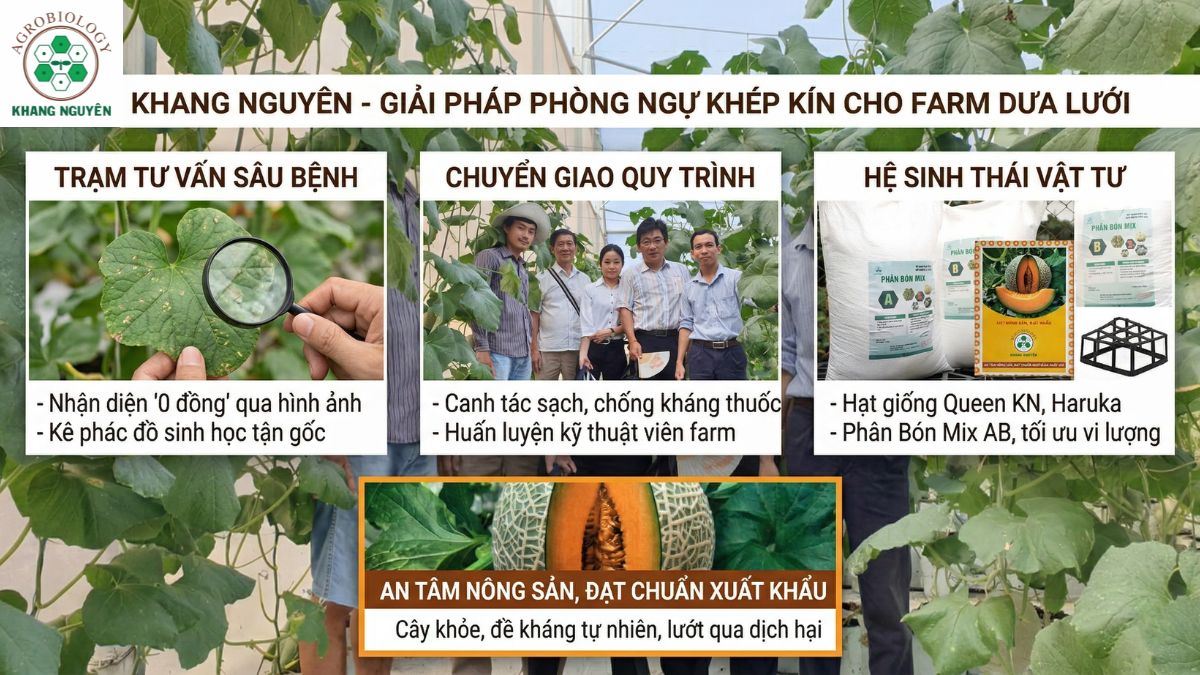 Giữa muôn vàn loại thuốc bảo vệ thực vật trên thị trường, chủ farm rất dễ mua nhầm thuốc hóa học độc hại khiến dưa lưới rớt kiểm định xuất khẩu. Thấu hiểu nỗi trăn trở đó, Khang Nguyên không chỉ cung cấp vật tư, mà còn mang đến sự an tâm tuyệt đối với vị thế của một Đối tác khoa học: