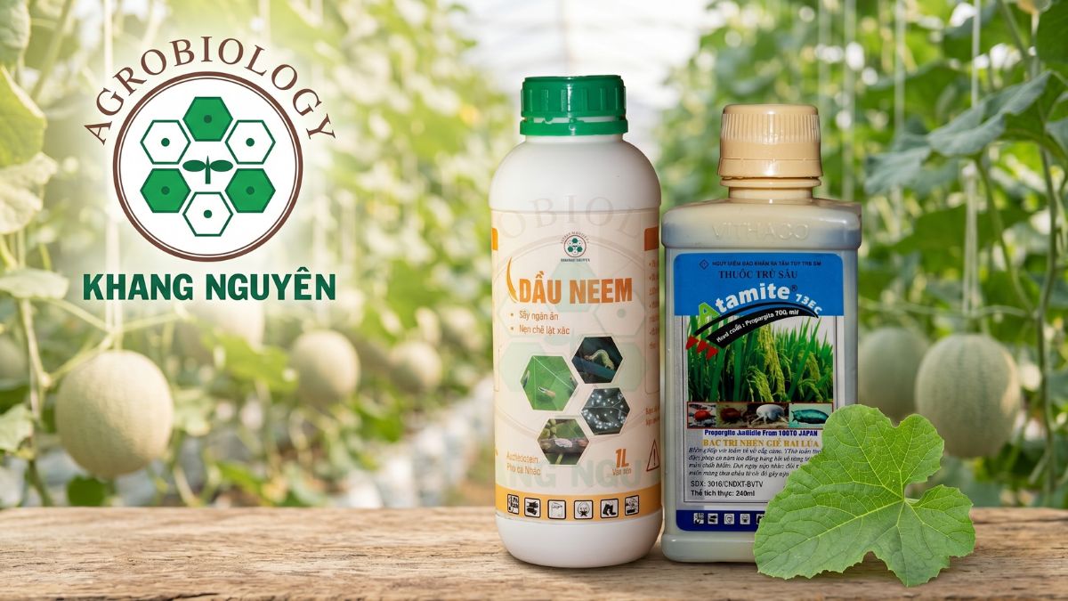 Sức mạnh thực sự của nhện đỏ hại dưa lưới nằm ở tốc độ sinh sản chóng mặt và khả năng giăng màng tơ cản thuốc. Để chiến thắng “bóng ma” nhà màng này, chủ farm cần duy trì độ ẩm ổn định, dùng áp lực nước xịt rửa lá và dứt khoát luân phiên thuốc Atamite 73EC với Dầu Neem Khang Nguyên. Giữ được dàn lá nguyên vẹn xanh mướt cho đến ngày cuối cùng chính là chiếc chìa khóa vàng để trái dưa lưới đạt độ Brix cao nhất.