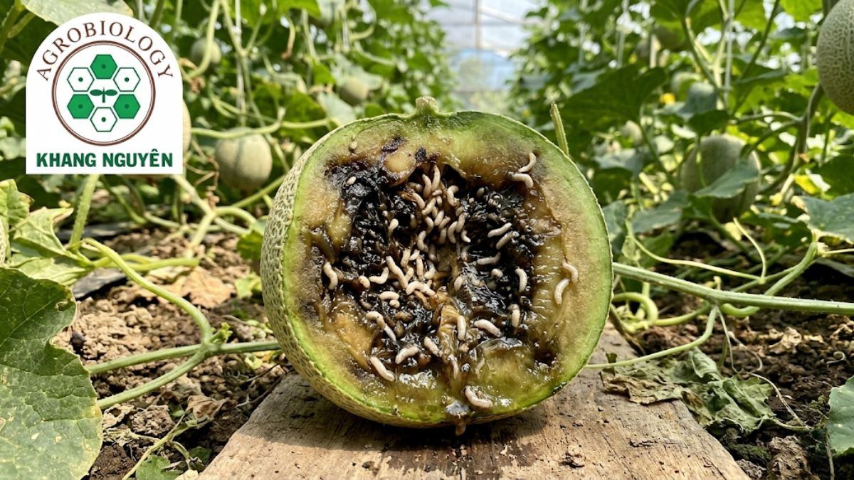 Bầy đàn dòi non tiêu hóa toàn bộ phần lõi của quả dưa lưới. Hoạt động nhai ngoạm liên tục này đẩy cây dưa vào 3 rủi ro tàn khốc: