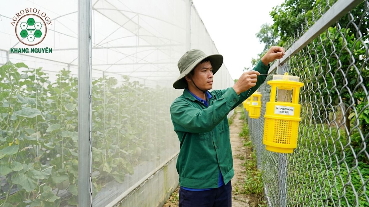 Tuyệt đối không treo bẫy bả bên trong khu vực trồng dưa. Bẫy pheromone phát tán mùi hương dẫn dụ cực mạnh. Nếu treo bên trong, bạn sẽ vô tình “mời gọi” ruồi vàng từ ngoài tự nhiên tìm mọi khe hở để chui vào nhà màng. Bẫy bả chỉ được treo ở vành đai hàng rào cách khu vực trồng ít nhất 10 mét.
